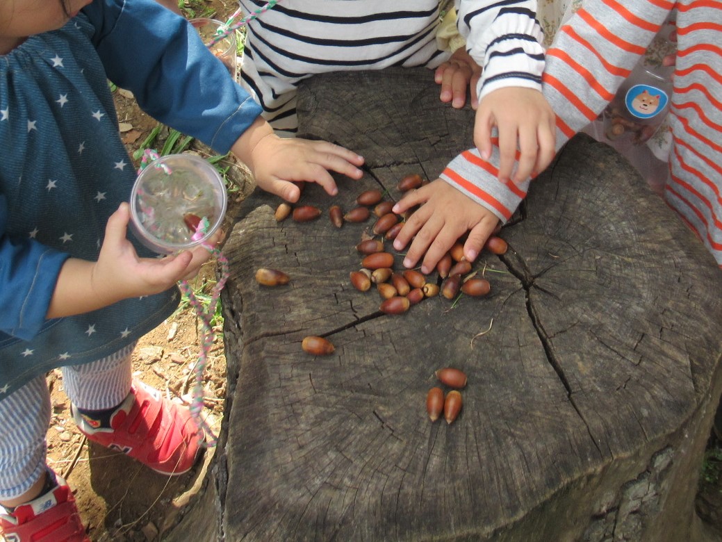 「先生!来て!来て!」 公園に着き遊び始めると、何やら奥で遊んでいた子たちが呼んでいます。 行ってみると「木の実」がいっぱい生っていました。 「先生取り放題だね」 喜んで摘んでい […]