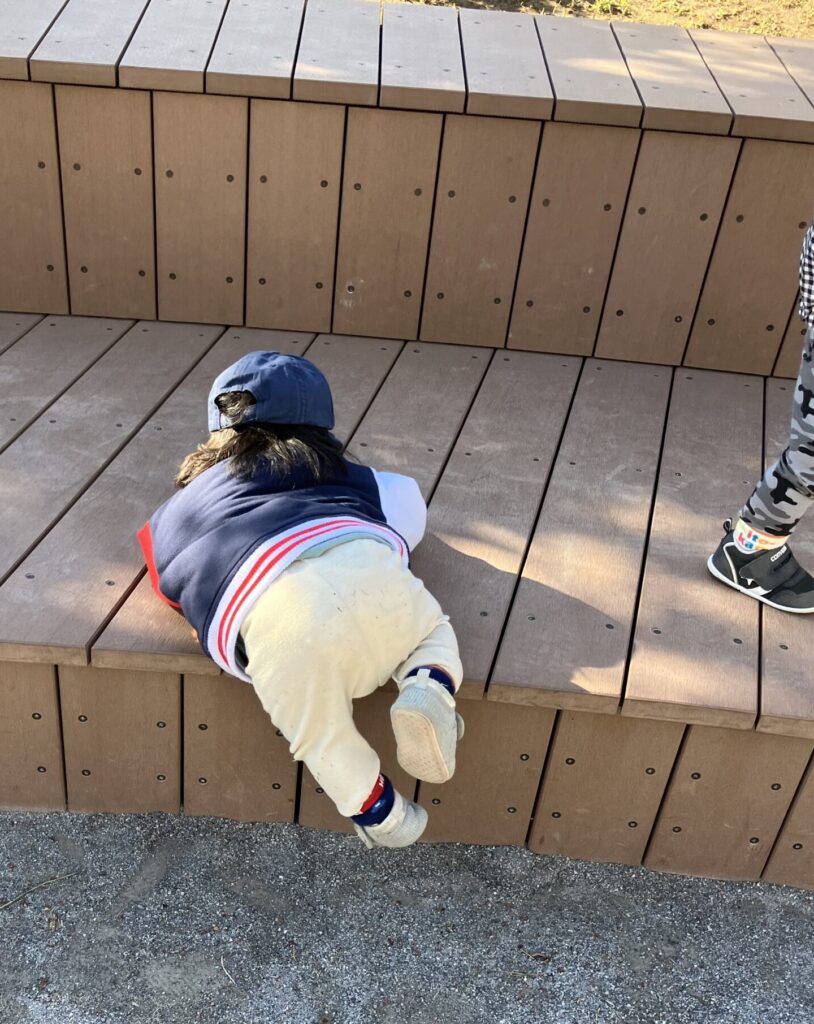 高台に上り下り(ちゃんと下りる時は後ろ向きになり、足から下りています)したり、