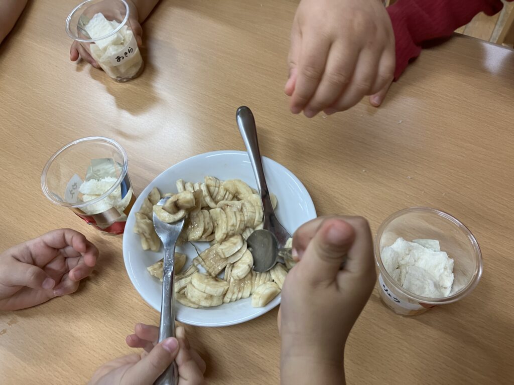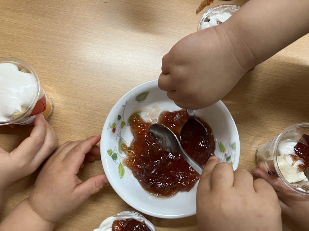 スプーンはお友だちとじゅんばんこで使うことができました😊