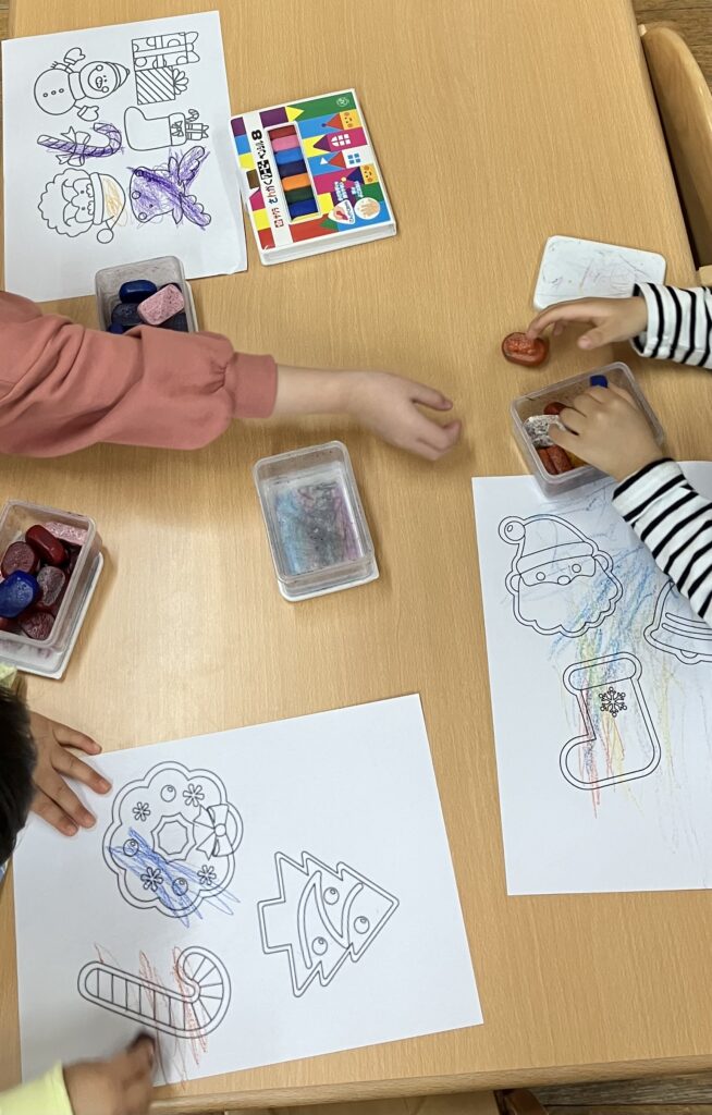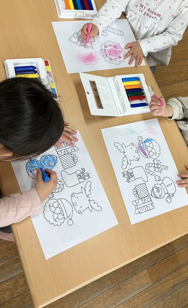 クリスマス塗り絵も色を選んで塗って完成を喜んでいました🎅